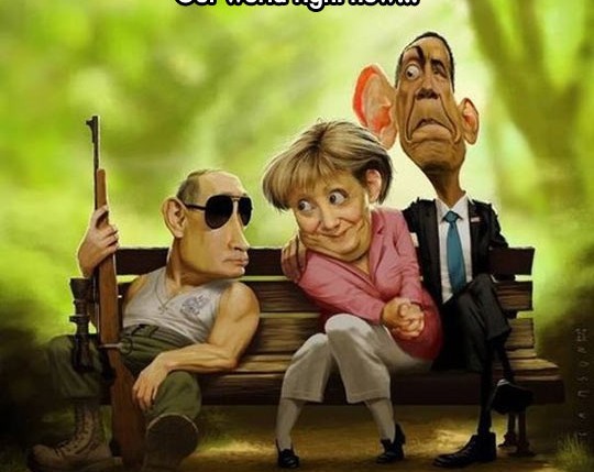 Saksamaa liidukantsler Merkel ja Venemaa president Putin matkavad Alpides. Äkki tuleb laviin, matab nad lume ja jää alla ning mõtlevad külmuvad surnuks. 100 aasta pärast leitakse nende kehad ja uue tehnoloogia abil äratatakse nad ellu. Natuke endid kogunud tormavad nad kiiresti ajalehti hankima, et saada teada mis maailmas 100 aastaga muutunud on. Putin loeb natuke ja puhkeb naerma. „Mis sind naerma ajas“, pärib Merkel.