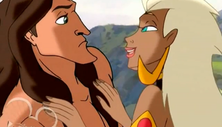 Tarzan võtab oma niudevöö ümbert, astub lähemale ja virutab Jane’le jalaga kõhtu.