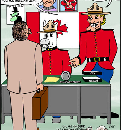 Kanada kodanikud kurdavad, et illegaalsed immigrandid põhjustavad juurviljade puuduse kaubandusvõrgus, on ostnud kokku kõik Barbara Streisand’i CDd ja koormavad üle interneti laadides alla oma telefonidesse treeningu äppe! „Mul on kahju ameerika liberaalidest“, ütles üks Ottawa elanik, „kuid Kanada majandus ei suuda neid kõiki toetada. Kui palju tantra-õpetajaid, liberaalse kunsti asjatundjaid, jms ikka üks riik vajab?“