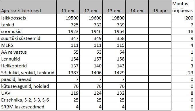 Infokillud sõjateatrist 13. aprillil