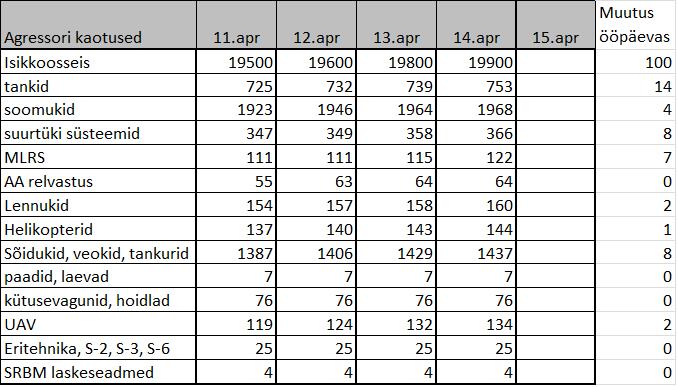 Infokillud sõjateatrist 14 aprillil