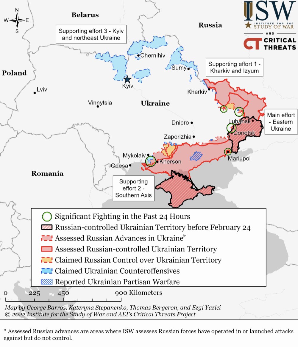 - Donetski ja Tavria suunal olid Venemaa vaenlase peamised jõupingutused suunatud Popasna ja Rubižne asulate vallutamise katsetele. Edutult.