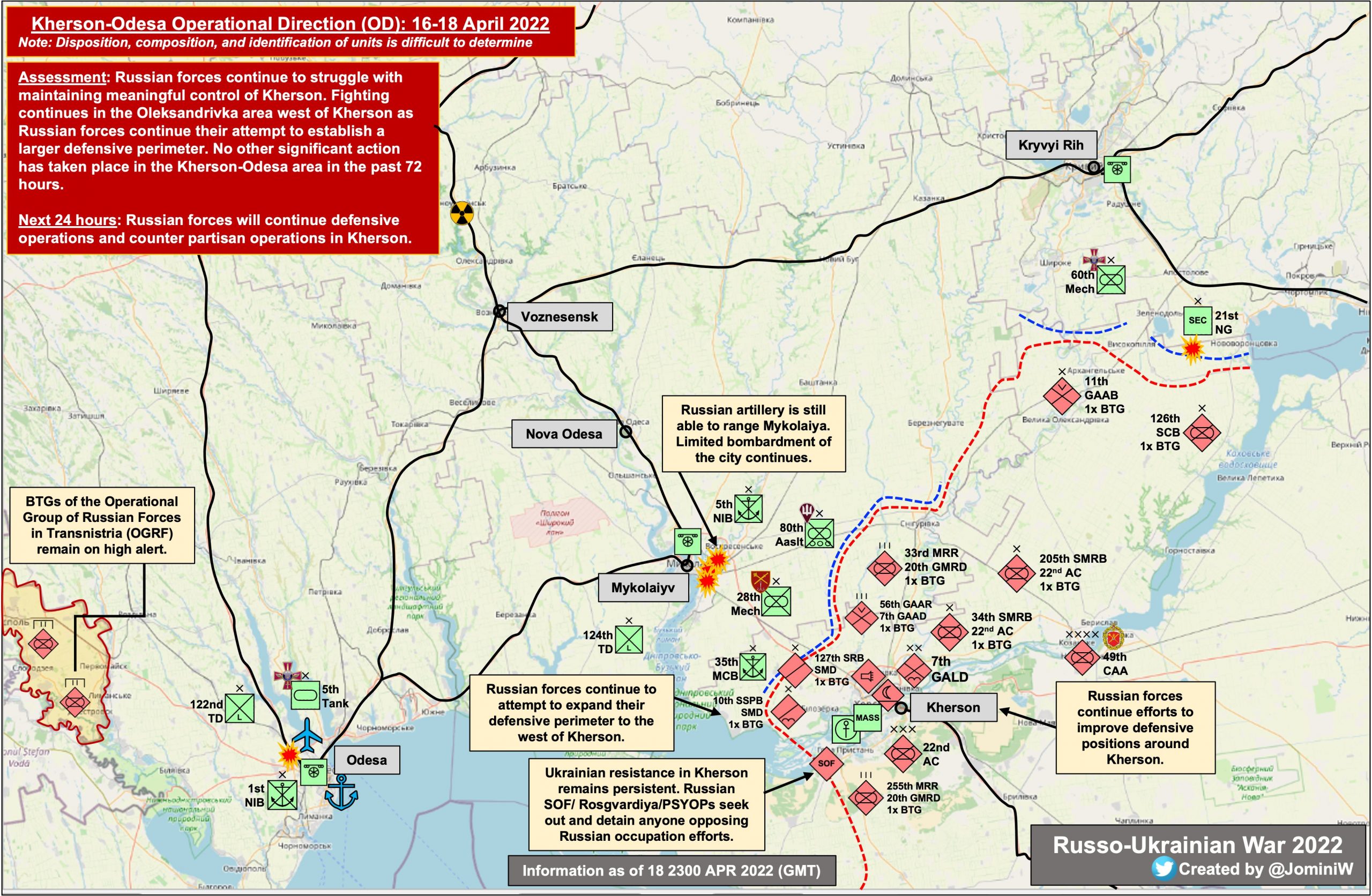 - Lahingud jätkuvad Lõuna-Buhi piirkonnas Oleksandrivka piirkonnas, kus vaenlane on ebaõnnestunud. Vaenlane üritab jõuda Hersoni oblasti halduspiirile ja ei lõpeta asulate pommitamist.