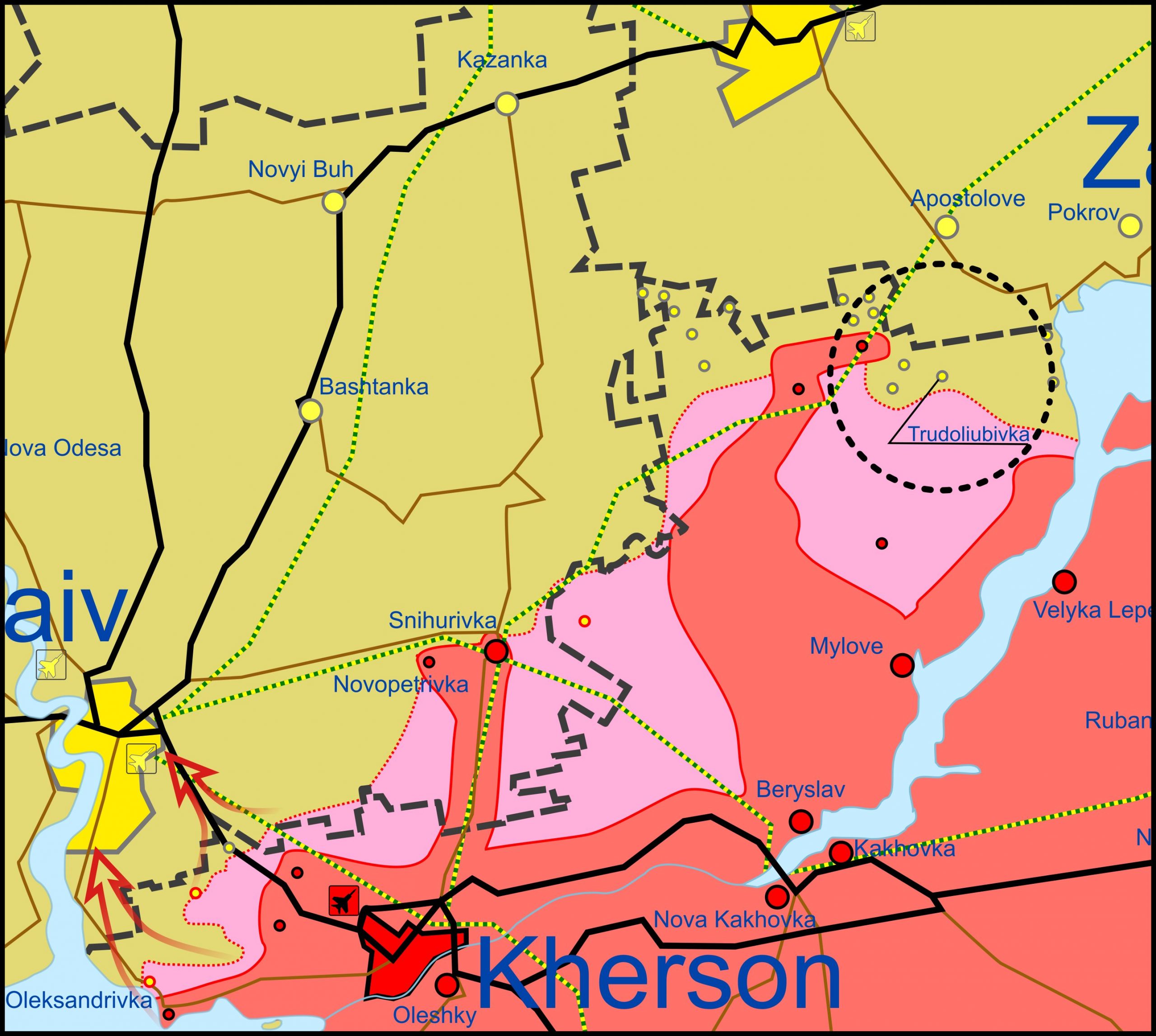 - Tavrija ja Lõuna Bugi suundades tegutseb väegrupp mis koosneb 8. ja 49. armee eraldiseisvatest üksustest, 22. armeekorpusest, Lõuna sõjaväeringkonna Musta mere laevastiku rannikuvägedest ja õhujõududest. Vaenlase põhilised jõupingutused on keskendunud tema taktikalise positsiooni parandamisele ja nende hõivatud piiride säilitamisele.