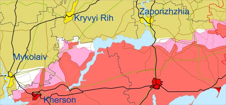 - Hersoni linnas võtavad Venemaa sissetungijad kasutusele mitmeid meetmeid, et tagada Venemaa okupatsioonivägede tegevus ja toetada Venemaa okupatsioonirežiimi. Suurenenud on kontrollpunktide ja mobiilsete patrullide arv.