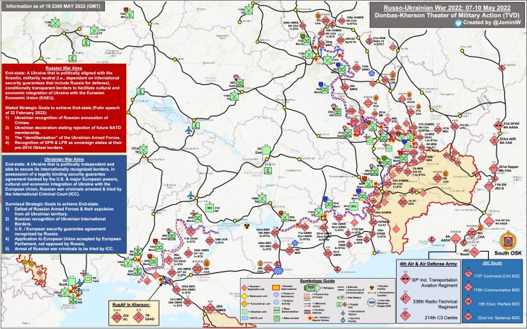 • Mariupoli linnas blokeerib vaenlane meie üksusi Azovstali tehase lähedal. Suurtükiväe ja tankide toel viib läbi rünnakuoperatsioone. Annab raketi- ja pommi lööke.
