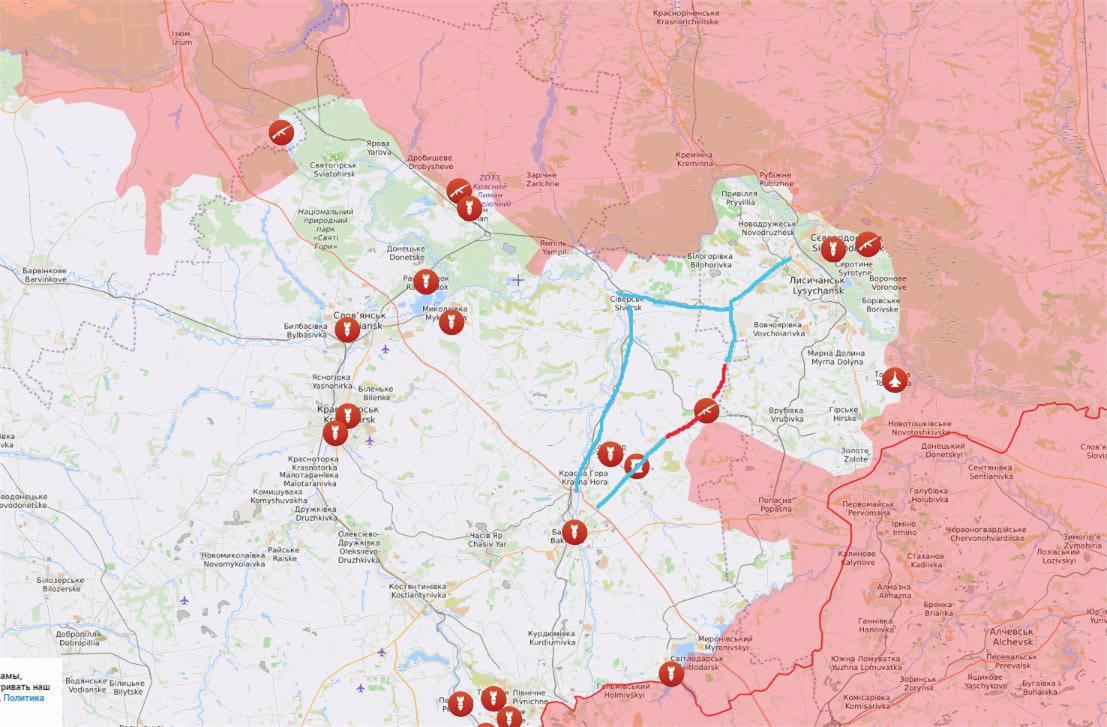 Nagu hommikul sai juba kirjutatud, on okupantide kontrolli all osaliselt maantee mis ühendab Bahmati ja Lõssõtšanskit. Lõik Bilohorivka ja Berestove vahel. Veel on Ukraina kontrollitaval territooriumil üks ja viimane teelõik, Siverski ja Zolotarivka vahel, mida mööda pääseb Lõssõtšanski ja Severodonetski. Seda lõiku kutsutakse nüüd eluteeks. Eile liikus video kus keegi autoga seda kasutas ja suurtükituli ajas teda taga. Üksuseid ja varustust sellel teel nii väga enam ei liiguta sest suurtükitulega saab seda katta kahest-kolmest suunast. Tõenäoliselt on kindlam sellel teel surra kui linnalahingus.