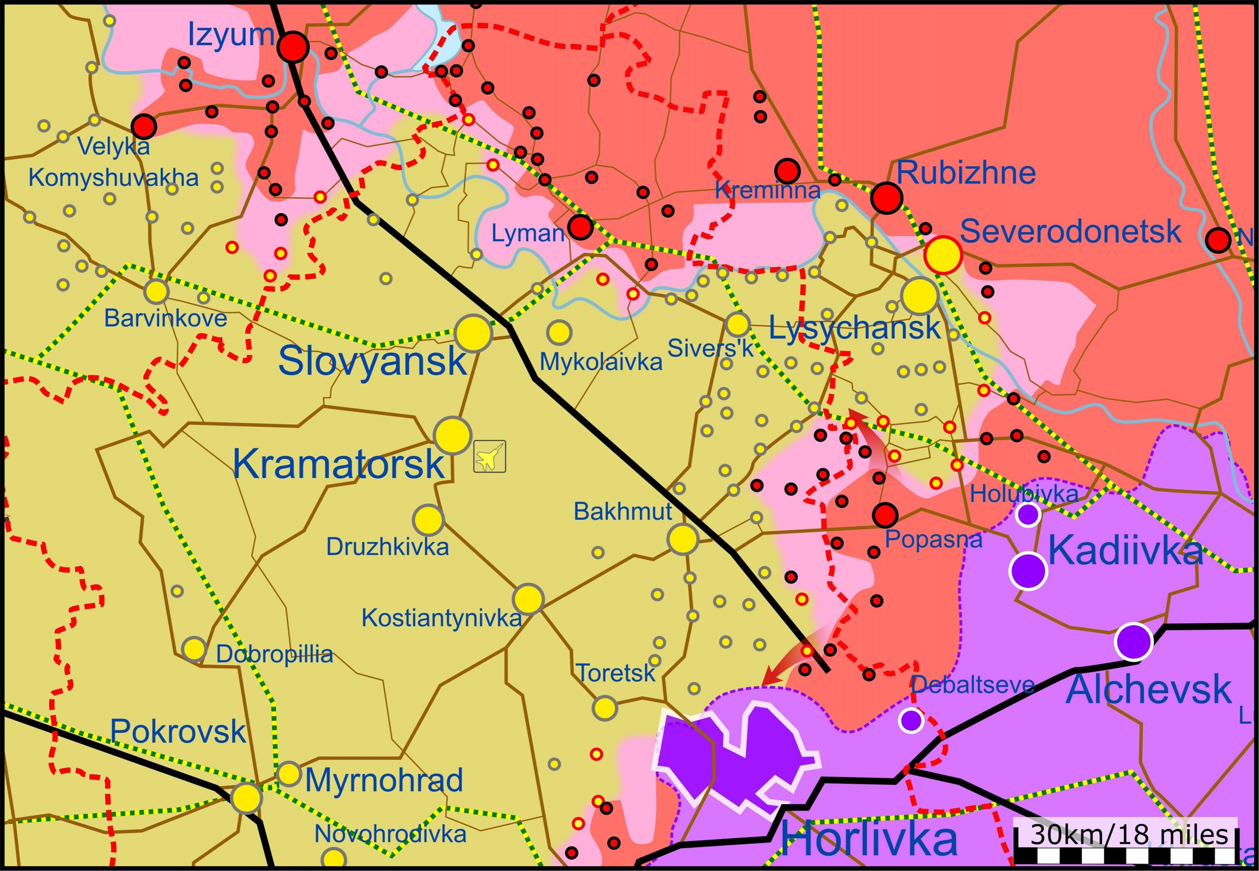 - Severodonetskis ja Toškivkas toimuvad rünnakud Severodonski kesklinna suunas, lahing jätkub.