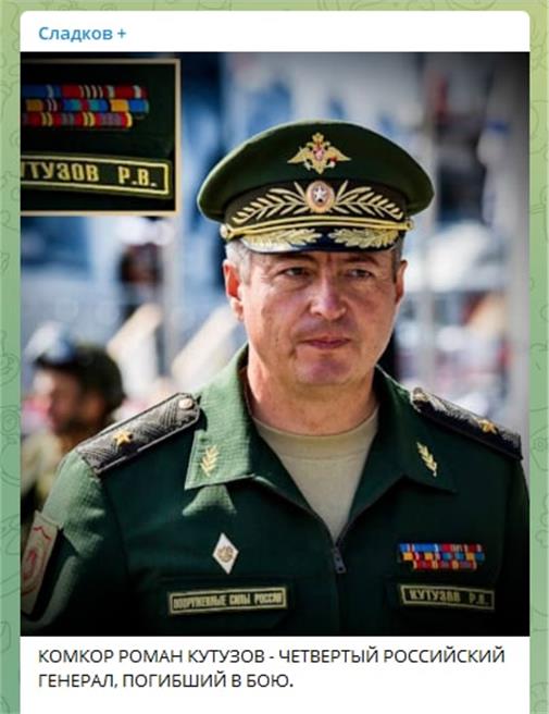- Teatatakse, et kindralmajor Roman Kutuzov hukkus täna lahingumissiooni käigus. Kõik juhtus LNR-i Popasnyansky piirkonna Nikolaevka asula lähedal. Teenistusajal autasustati Roman Vladimirovitši Kutuzovi, Julguse, “Sõjaliste teenete eest”, “Au” ordeniga ja medaliga “Julguse eest”. Kindralmajor Roman Kutuzov otsustas külastada Popasna lähedal rindel olevaid vägesid. Selgub, et see oli halb mõte, kuna ta hukkus Ukraina armee suurtükirünnakus.