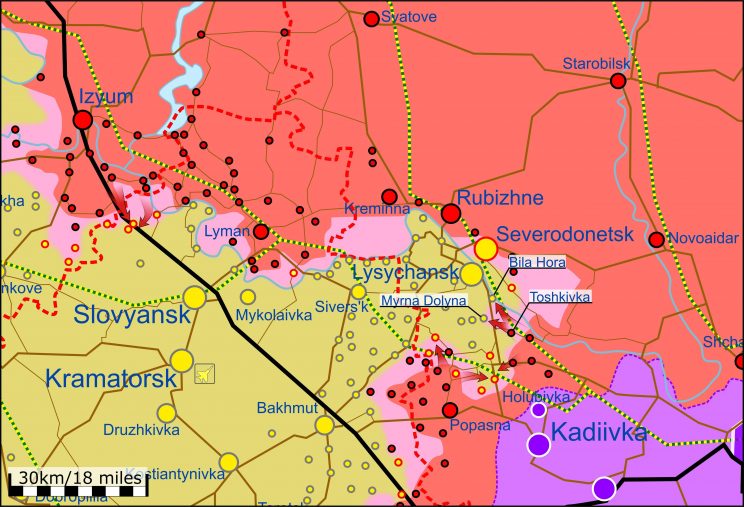 • Vaenlane teostas süstemaatiliselt suurtükiväe tulistamist Hrušuvakha, Virnopillja, Adamivka ja Mazanivka asulate piirkondades. Andis Bogorodõtšne lähedal õhulööke tsiviilinfrastruktuuridele.