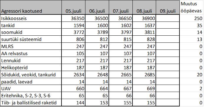 Infokillud sõjateatrist 08. juulil