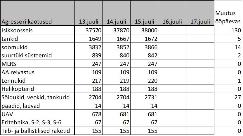 Infokillud sõjateatrist 15 juulil