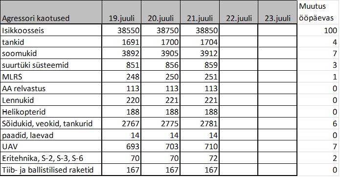 UA hinnang ru kaotustele