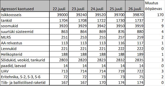 Infokillud sõjateatrist 26. juulil
