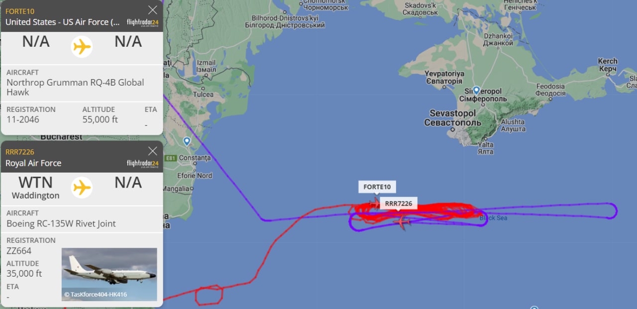 - RF relvajõudude tegevust Krimmis ja Mustal merel jälgivad jätkuvalt lääneriikide luurelennukid. Ameerika strateegiline luure UAV RQ-4 Global Hawk on võimeline vastu võtma radaripilte maastikust kuni 200 kilomeetri kauguselt ning sellel on ka võimas elektronoptiline digikaamera. See võimaldab tal jälgida kõike, mis toimub Krimmi lõunarannikul, sealhulgas Sevastopolis. Luurelennukit RC-135W Rivet Joint kasutatakse õhutõrje- ja lennupositsioonide luureks, mere-, maa- ja õhuradariallikate jälgimiseks ja fikseerimiseks. Lihtsamalt öeldes “avab” Briti lennuk Venemaa õhutõrjesüsteemide, lennunduse ja mereväe positsioonid.