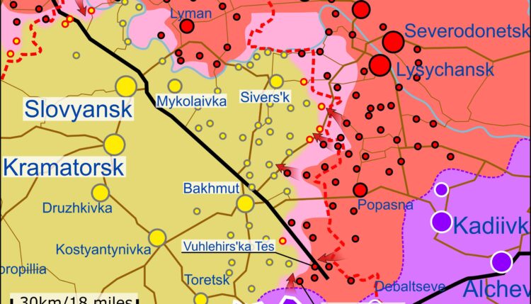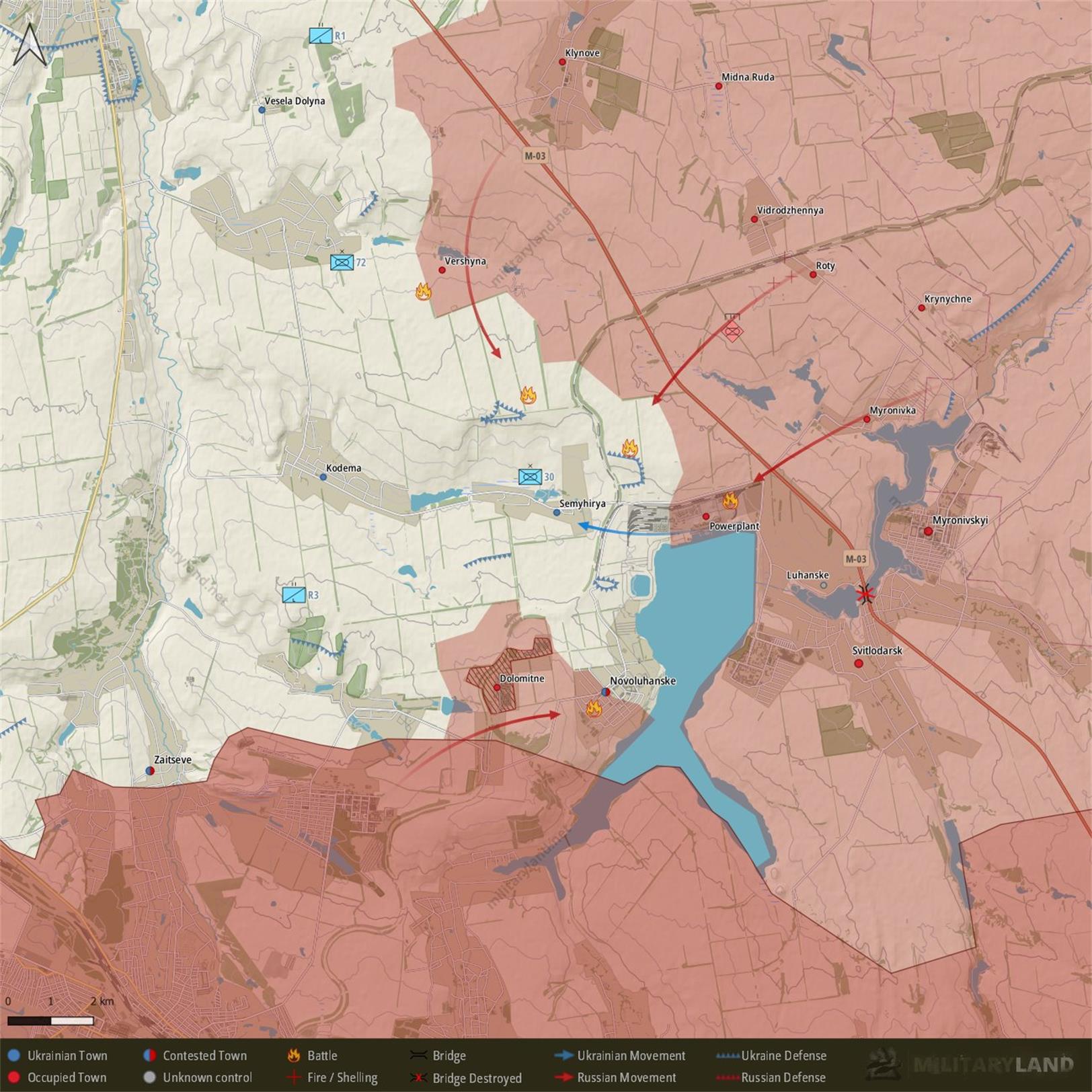 OPOLUKORRAS suuri muutuseid ei ole. Väidetavalt on agressor vallutanud Novolugans’ki ja Vuhlegirski TES elektrijaama. Lahingud käivad. Vuhlegirski veehoidla ja Mironivske veehoidla vahel on nn maakitsus mis on ukrainlaste poolt hästi kaitstud. Novoluganski vallutamine võimaldab agressoril jõuda Ukraina kaitse selja taha E40 maanteele ning liikuda kagu suunast Bahmuti peale.
