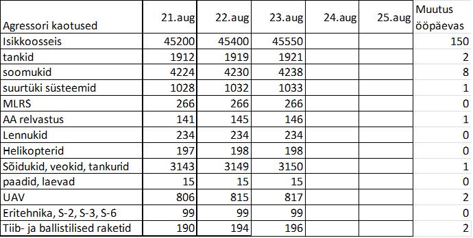 Operatiiv- ja sõjaga seotud info 23. augustil