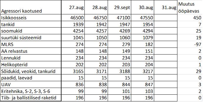 Operatiiv- ja sõjaga seotud info 30. augustil