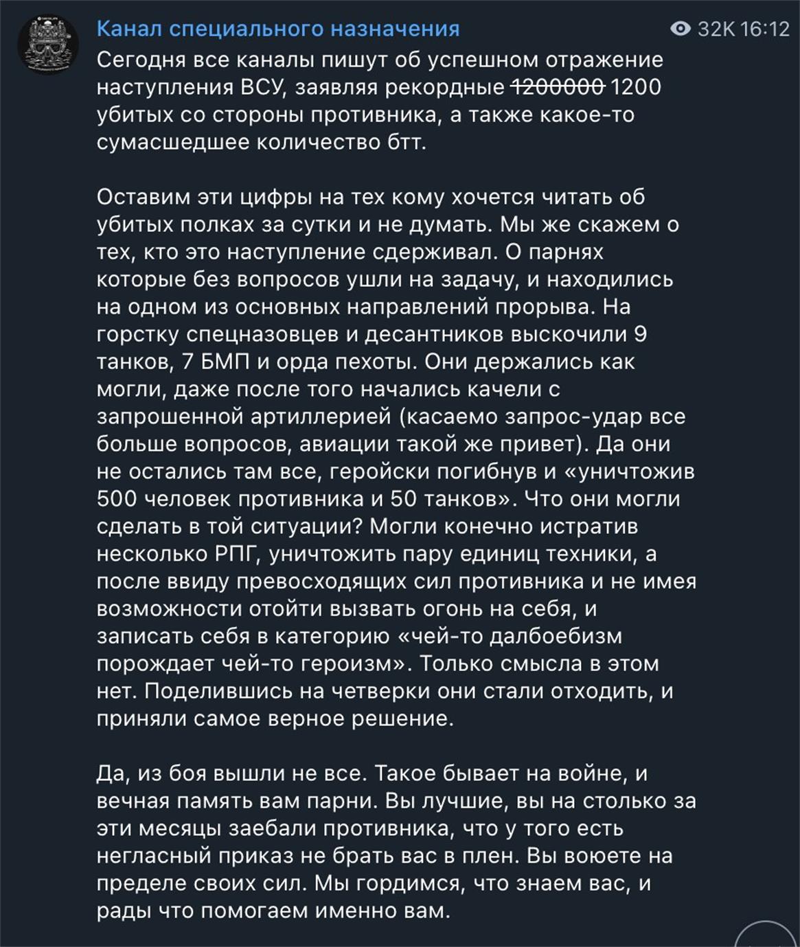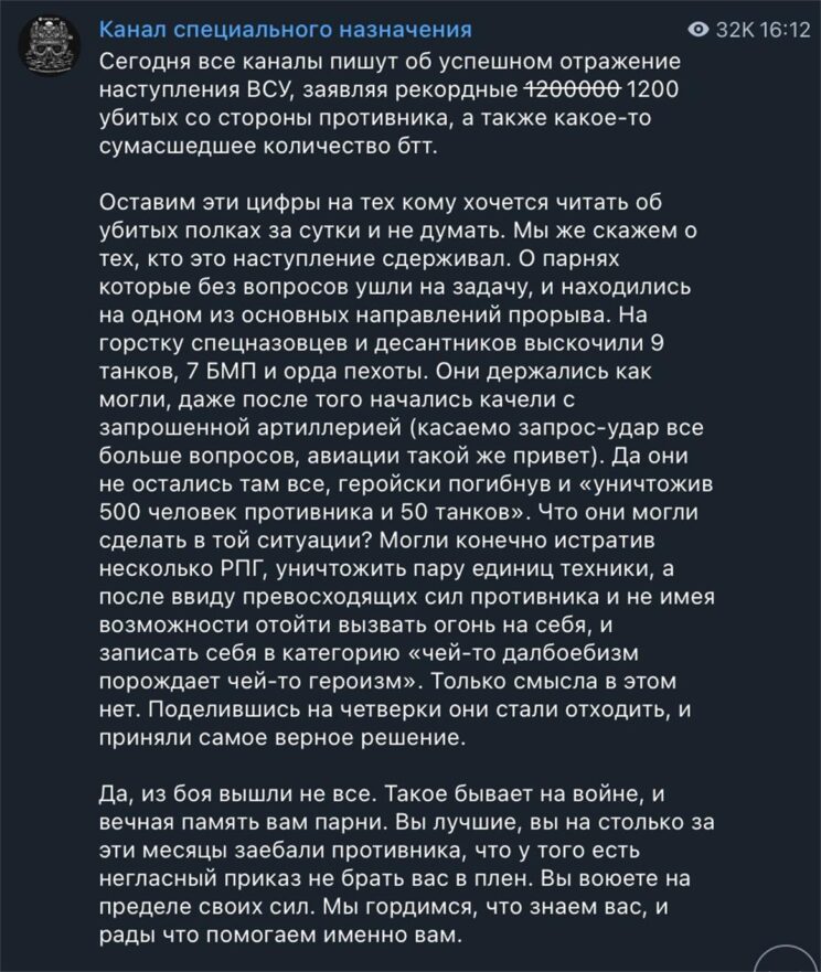 - See postitus, mida jagas GREY ZONE, väidab, et lõunapoolsed venelased pidid tugeva surve all taganema ning neil on probleeme suurtükiväe ja lennunduse toetuse taotlemisega. Samuti lükkab tagasi kõik Venemaa ametlikud väited Ukraina kaotuste kohta. Herson eile.