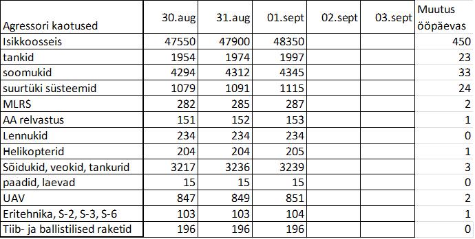 Operatiiv- ja sõjaga seotud info 01. Septembril