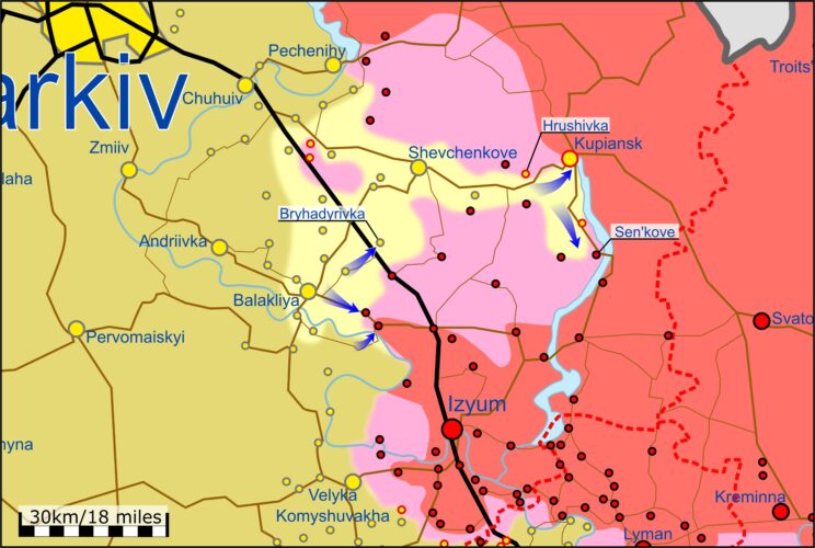 - Ukraina väed võisid liikuda Hrushivkast põhja pool Harkivi oblasti kirdeosas Velykyi Burlukis asuva Venemaa logistikakeskuse suunas.