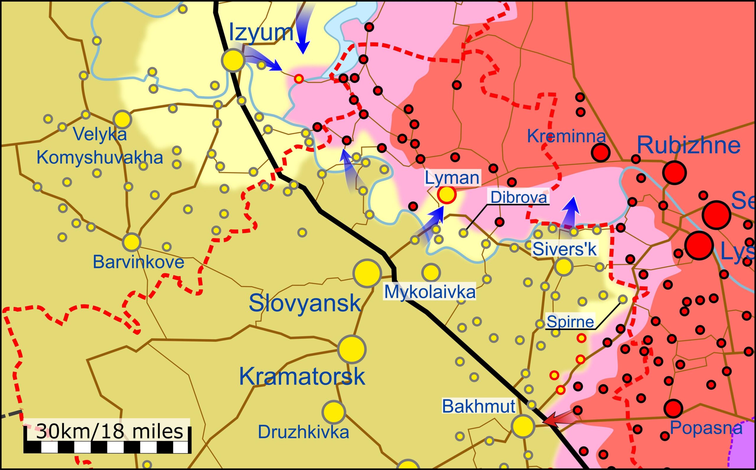 • Twitteris oli täna imestamist selle üle, et Kupjansk pidi vaba olema aga lahingud käivad. Kupjanskist läheb läbi Oskili jõgi. Hooga vabastati lääne kallas aga ida poole üle ei saadud. Täna siis teatab “Kraken”, et Kupjansk on täielikult vabastatud. Üksus KRAKEN ületas edukalt Oskoli jõe, mis võimaldas meie vägedel vastase linna vasakkaldast välja tõrjuda. Nüüd on linn täielikult Ukraina lipu all. Ukraina armee vastupealetung jätkub edukalt Oskili vasakkaldal. Allikate info räägib, et Dvoritšna on UA kontrolli all. Asub Kupjanskist ca 20 km põhja suunas. Seal asub teede P79 ja T2114 ristmik. Mõlemad teed viivad venemaale, oluline kontrollida. Väidetavalt vabastasid ukrainlased põhja Donetski oblastis Studenoki ja Sosnove.