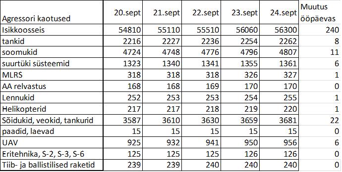 Operatiiv- ja sõjaga seotud info 24. Septembril