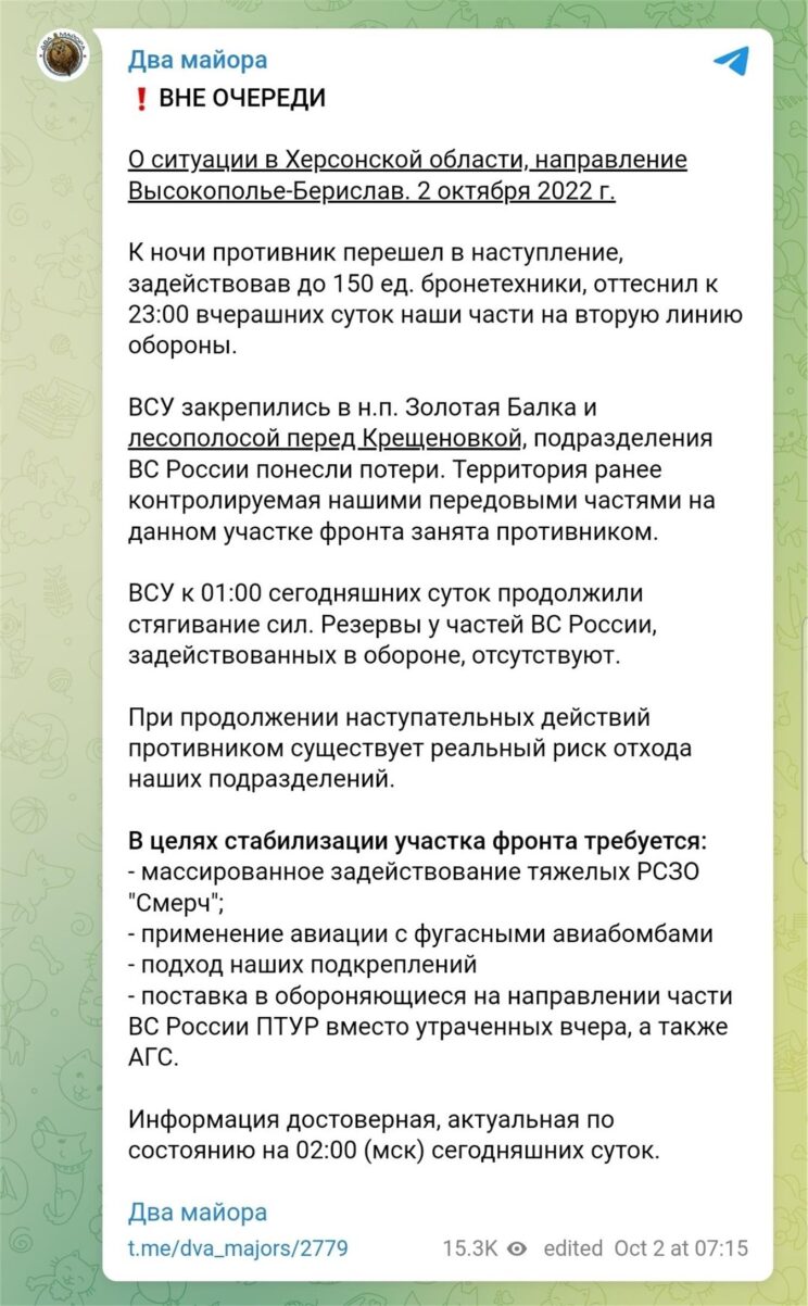 /1 pic.twitter.com/TtHQOT5tht— Special Kherson Cat 🐈🇺🇦 (@bayraktar_1love) October 1, 2022