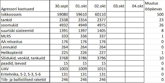 Operatiiv- ja sõjaga seotud info 02. Oktoobril