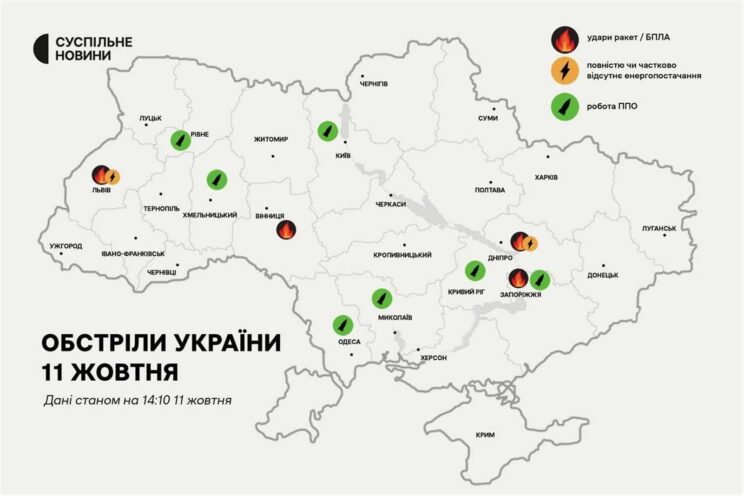 - Raketilöögid 11 oktoobril UA infra pihta. Infot on erinevat. 28 raketti tulistati UA pihta. Hävitati 14-20. Iraani droone samuti 13-14