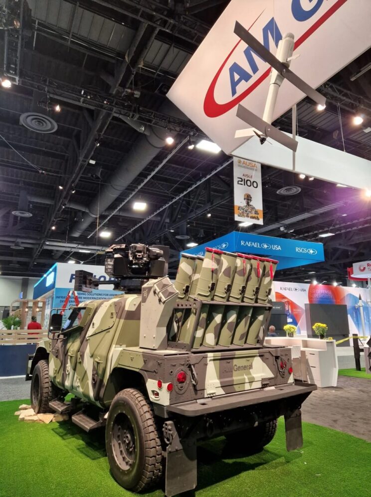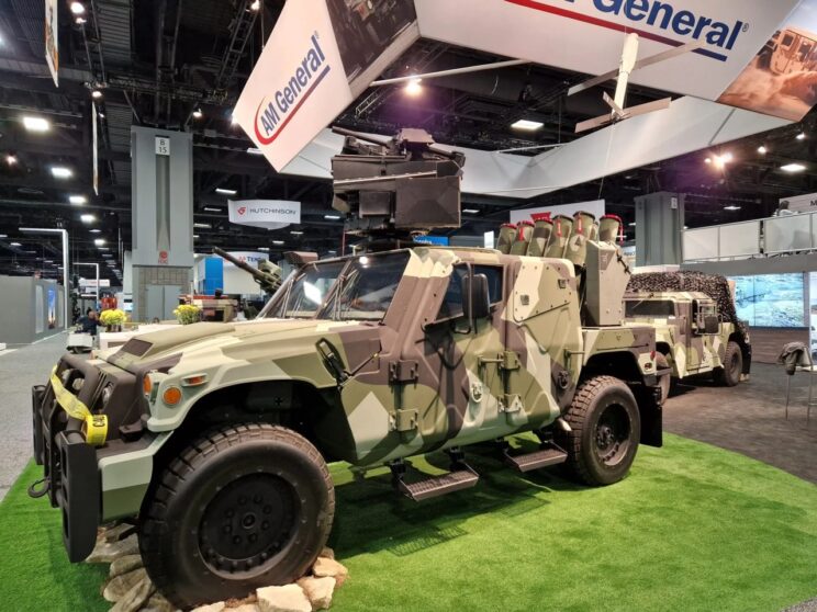 - AUSA-2022 näitusel esitleti uue põlvkonna HMMWVd. AeroVironment Switchblade’i auto NXT 360 šassiile paigutatud. 300/600 „hulkuva laskemoona“ pult, kaugjuhitav lahingumoodul Hornet Air Guard koos 40-mm automaatse granaadiheitjaga ja koos programmeeritavate detonatsiooni granaatidega UAV-de vastu võitlemiseks.