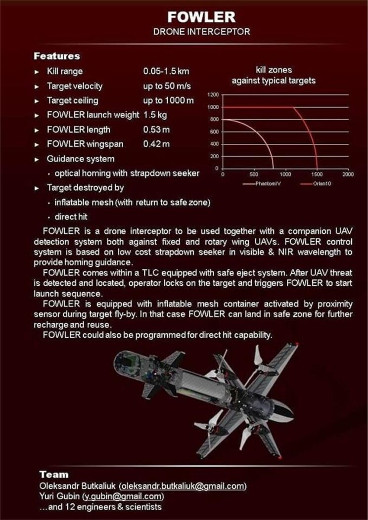 - Ukrainlaste omatoodang – droonide vastane kaitse vahend Fowler. Mingitel andmetel on arendusega tegeletud juba 2021 aastast.