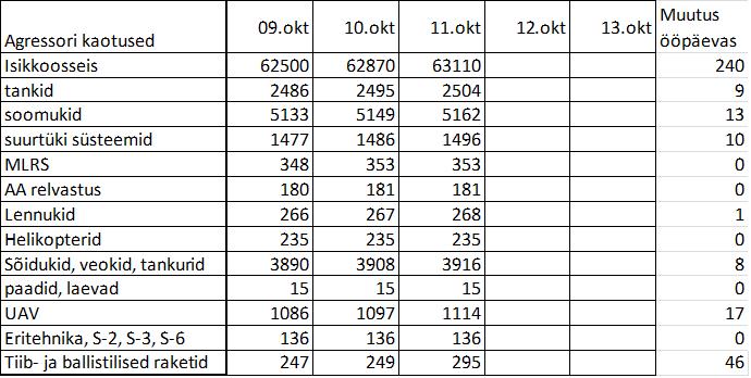 Operatiiv- ja sõjaga seotud info 11. Oktoobril