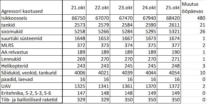 Operatiiv- ja sõjaga seotud info 25. Oktoobril