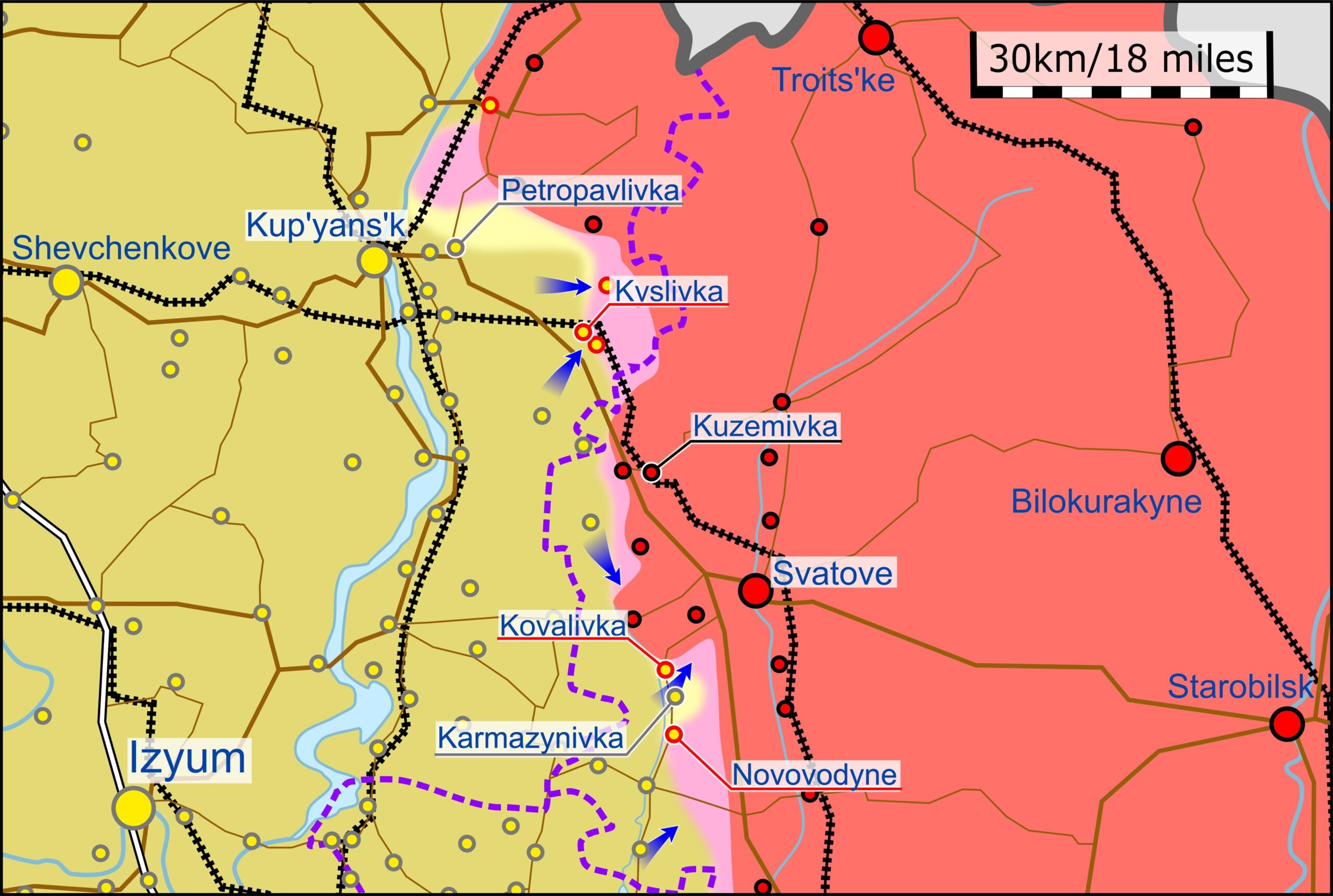Vene allikad väitsid, et Ukraina väed korraldasid 25. oktoobril maapealseid rünnakuid Svatovest läänes ja Kreminnale. UA on nüüd visuaalselt kinnitatud, et võtsid Kupjanskist ida pool asuva Petropavlivka kontrolli tagasi. Vene väed testisid Harkivi põhjaosas Ukraina kaitset ning ründasid Zemljanki ja Tšuhunivka asulaid.