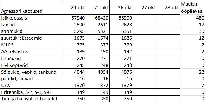 Operatiiv- ja sõjaga seotud info 26. Oktoobril