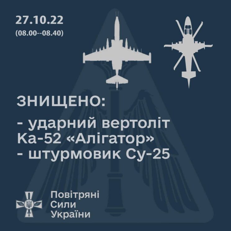 UA õhuvägi andis möödunud ööpäeva jooksul 5 lööki. Kinnitatud mõju elavjõule, vastase relvadele ja sõjatehnikale, 3 toetuspunktile ja õhutõrjeraketikompleksile. Eelmisel päeval tulistasid õhutõrjeüksused alla vaenlase helikopteri Ka-52, raketi X-59 ja 17 vastase UAVd. Päeva jooksul tabasid UA raketi- ja suurtükivägi 4 kontrollpunkti, 8 elavjõu fookusala, relvi ja sõjatehnikat, 3 laskemoonaladu ja 6 muud olulist vaenlase sõjalist objekti.