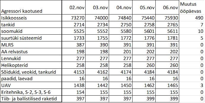 Operatiiv- ja sõjaga seotud info 06. novembril