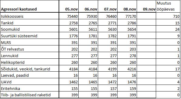 Operatiiv- ja sõjaga seotud info 08. novembril