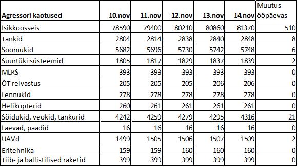 Operatiiv- ja sõjaga seotud info 14. novembril
