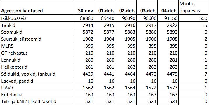 Operatiiv- ja sõjaga seotud info 04. detsembril