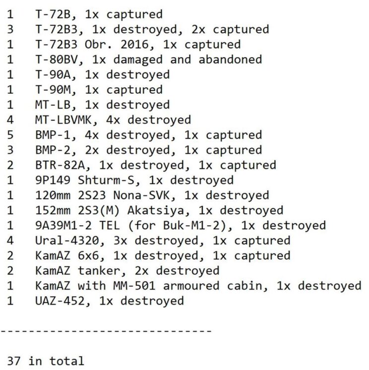 Ukraina sõdurid tulistasid alla vaenlase lennuki “Su-25” ja bezpílotnij tüüpi lennuki “Orlan-10”. Ukraina raketi- ja suurtükiväe üksused on tabanud 2 juhtimispunkti, laskemoonaladu, 3 isikkoosseisu, relvade ja sõjatehnika koondumisala ning suurtükiväe varustuse koondumisala.