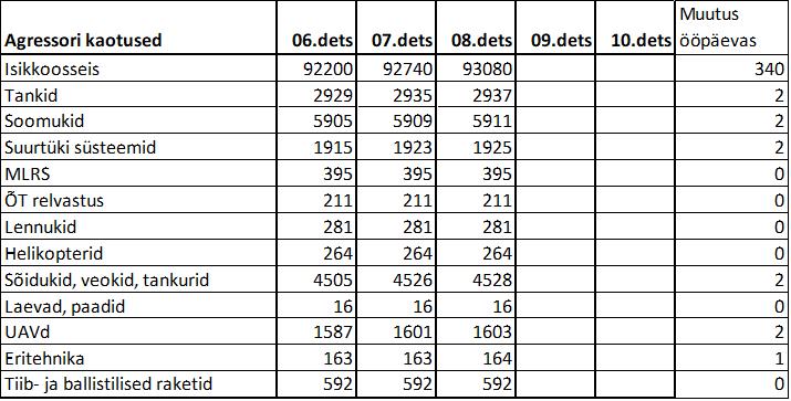 Operatiiv- ja sõjaga seotud info 08. detsembril