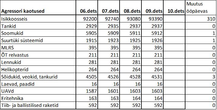 Operatiiv- ja sõjaga seotud info 09. detsembril