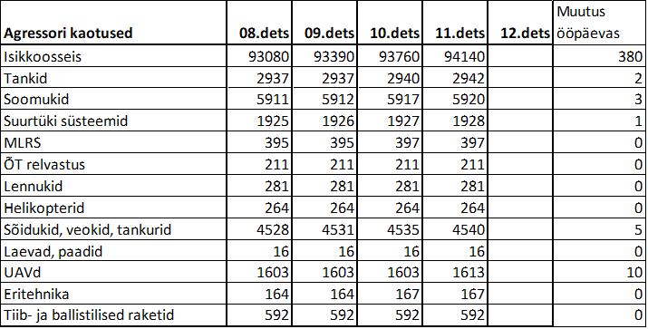 Operatiiv- ja sõjaga seotud info 11. detsembril