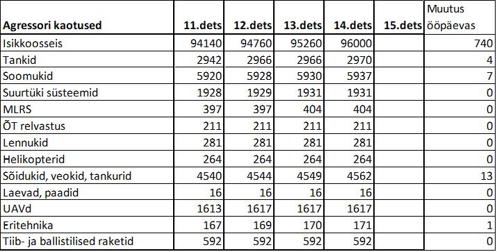 Operatiiv- ja sõjaga seotud info 14. detsembril