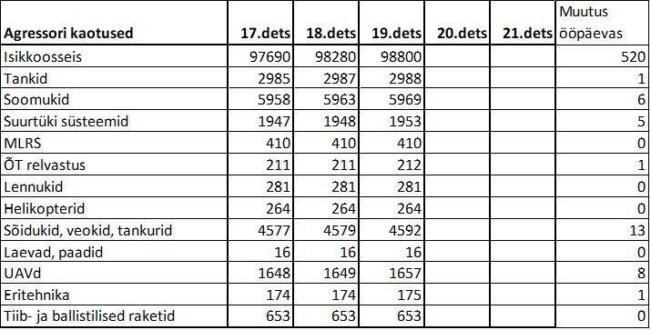 Operatiiv- ja sõjaga seotud info 19. detsembril