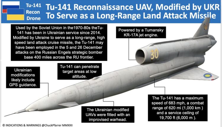 - Venemaa evakueeris Engels-2 lennuväljalt 4–6 strateegilist pommitajat Tu-95. Teatatakse, et lennukid suunati Amuuri oblastis asuvale “Ukrainka” lennuväljale. Tõenäoliselt on see seotud sagenenud rünnakutega Venemaa lennuväljadele. Aleksei Arestovitš vihjas eile õhtul Feiginile, et täna oli tõepoolest kavas massiline raketirünnak Ukraina vastu, kuid seletamatu intsident Engelsi lennuväljal võis selle ära hoida. Kuulduste kohaselt olevat intsident olnud märkimisväärne.Vene meedia kirjutab, et tuletõrje- ja kiirabiautod lahkusid lennujaama alalt. Vladimir Zolkin paljastas droonirünnaku tagajärjed Engelsi lennuväljale.
