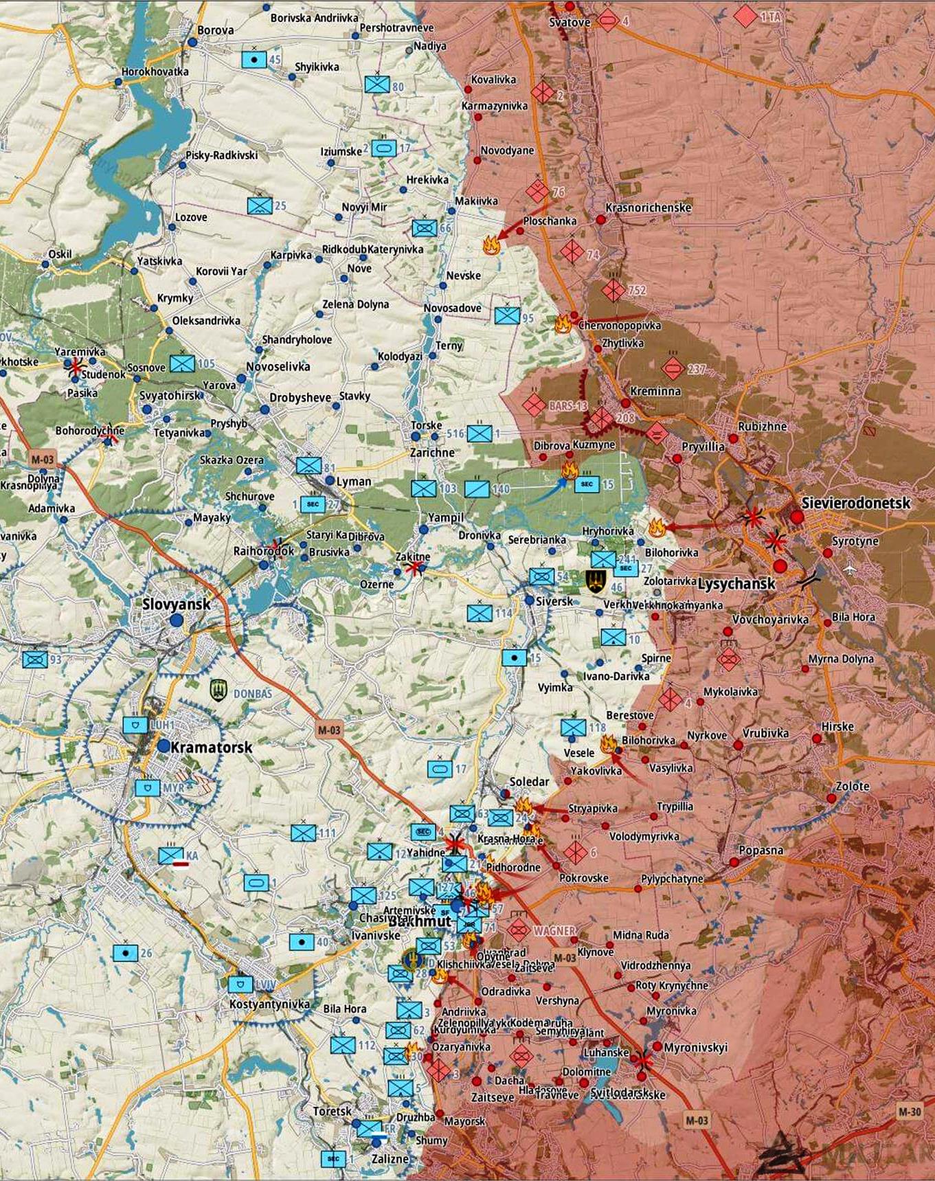 • Võitlused jätkuvad ka Klištšiivka piirkonnas. Vaenlane ei saa edasi liikuda Ukraina kindlustatud positsioonide tõttu asulast läänes ja loodes.