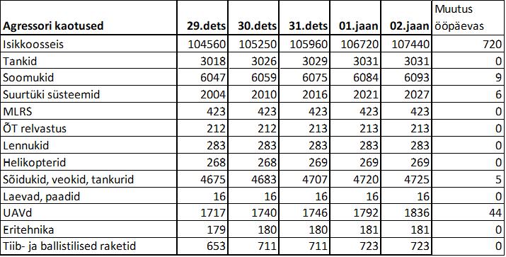 Operatiiv- ja sõjaga seotud info 02. jaanuaril